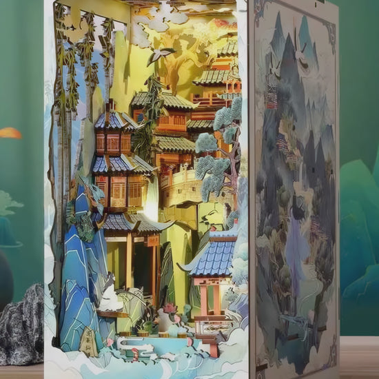 This model takes inspiration from the mist-covered temples and sacred landscapes of ancient China, where the mountains meet the heavens. Each delicate tier and glowing lantern evokes the stillness of early morning — a moment where nature and spirit coexist in perfect calm. Place it on your shelf and let its soft light carry the hush of the highlands into your home.